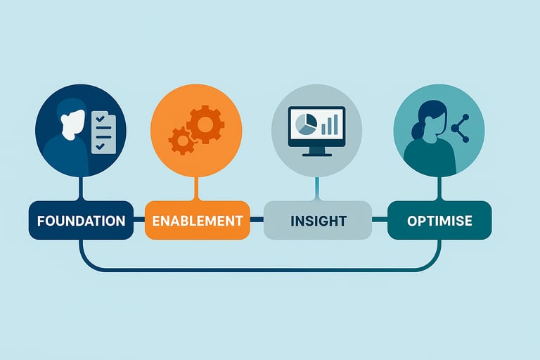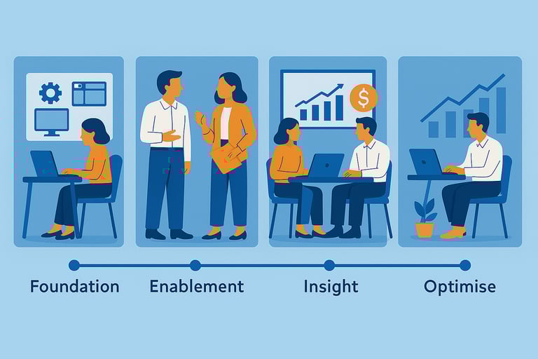 A 3-phase, full-stack transformation for SMEs over 3–6 months with continuous optimisation post transformation.